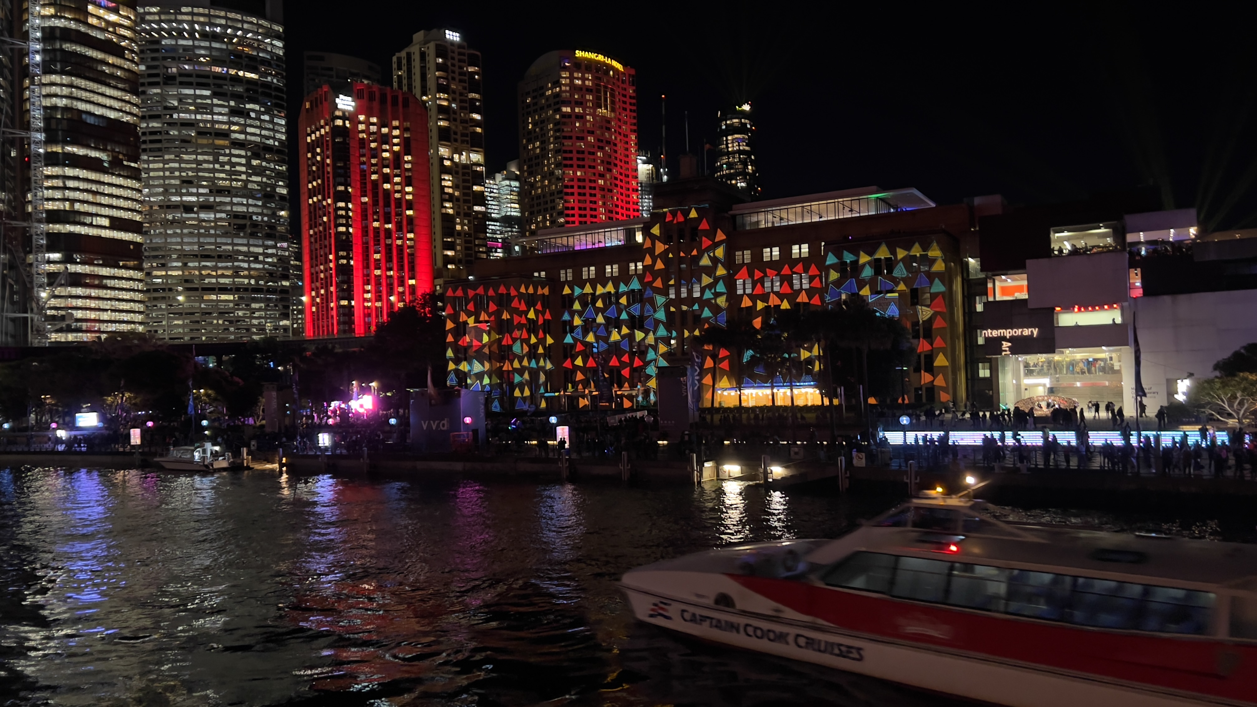 When we arrived in Sydney we were able to walk to hour hotel which was in Darling Harbour, really close to China Town. We then high-tailed it over to the King Street Wharf for a surprise I had for the kids. We were in town during a light and music festival they called "Vivid Sydney." Basically they had a bunch of light installations and stuff. I'm sure its a ploy to bring visitors into the city. It was pretty cool. I booked a boat trip around the harbour so we could see all the lights from the boat. I figured that would be easier than trying to march the kids around the city. I'm so glad I booked this. It is one of my favorite memories from living here so far. Here are some pictures during our evening boat ride around the harbour during Vivid: