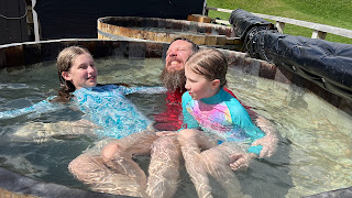 Our first surprise in arriving there was that New Zealand started daylight savings time one week before Australia. So we now had a three hour time difference. As a result, we got started to our next destination later than we had planned. Shannon had really wanted to take the kids to a hot water beach while in New Zealand. She had read about the most famous one in Coromandel where you can dig our own natural hot pool just feet from the pacific ocean. Naturally heated mineral water bubbles up (at low tide) if you dig in the right spot. Since we only had a week on the North Island and SO many things we wanted to do, but we couldn't make the drive to Coromandel work. She found a blog post on another hot water beach just south of Auckland (and on the way to where we wanted to go to see a glow worm cave). The beach was also a black sand beach, which the kids had never seen before. So we planned one night at Kawhia.
